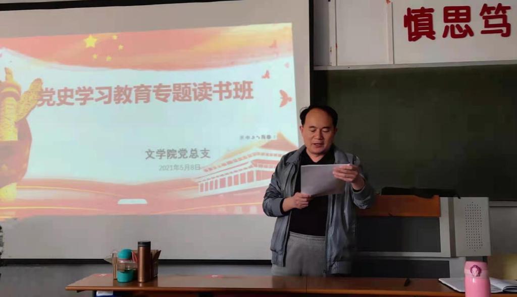 为加强党史学习教育,强化党员政治理论武装,5月8日下午,6776永利集团于文科楼317举办党史学习教育专题读书班开班仪式。仪式由6776永利集团党总支书记宋建修主持,全体师生党员参加。