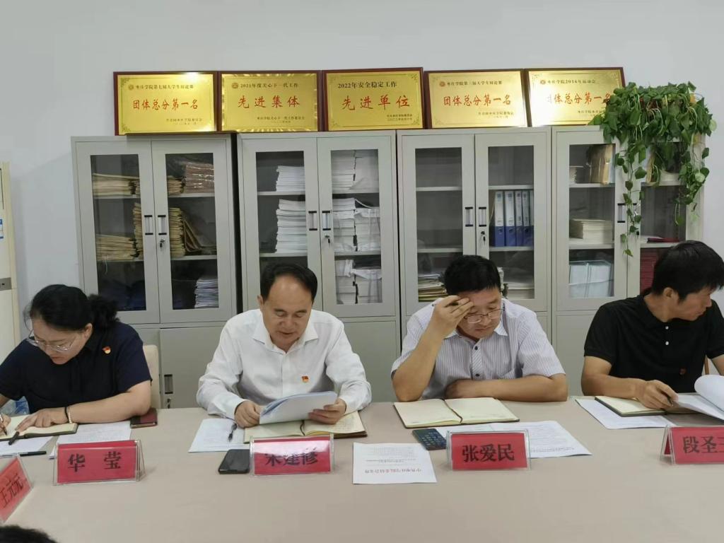 根据校党委要求,我院党总支领导班子于8月27日召开学习贯彻习近平新时代中国特色社会主义思想主题教育专题民主生活会。校团委书记,督导组组长丁聪同志、督导组成员刘吉国同志到会指导,院党总支书记宋建修主持会议并讲话。