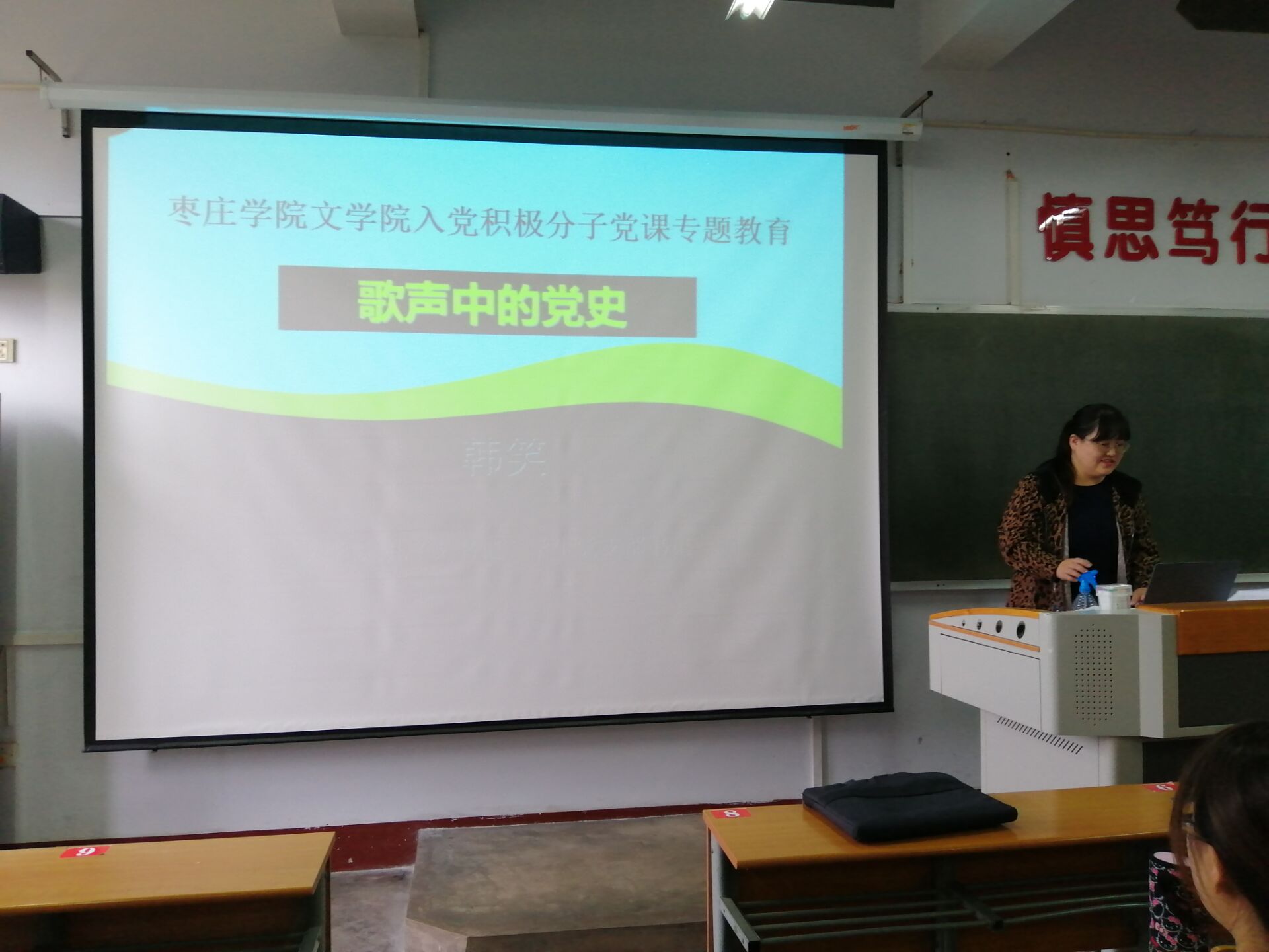 为帮助入党积极分子梳理党史脉络,加强对红歌的鉴赏,6776永利集团于10月14日下午在文科楼317教室开展了课堂教学——歌声中的党史,6776永利集团团总支书记韩笑老师受邀担任主讲。