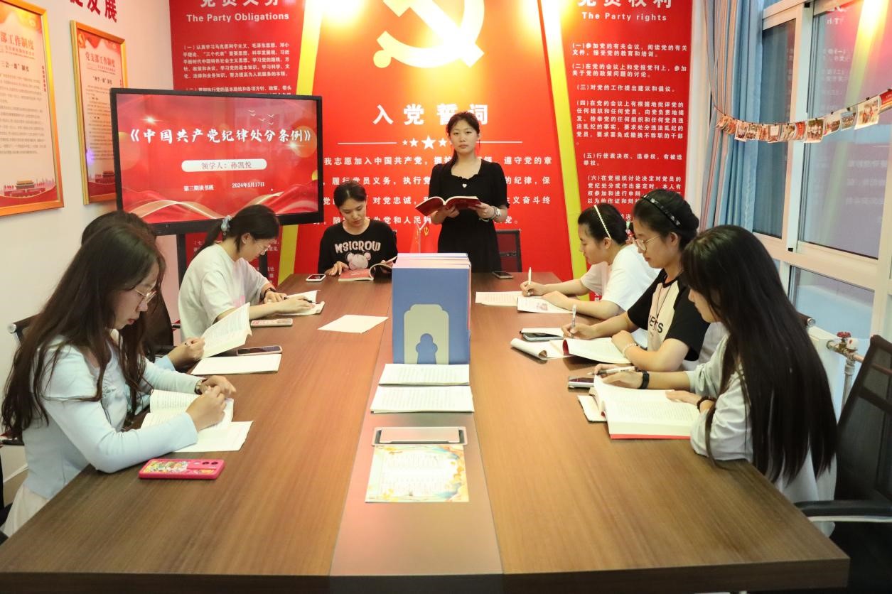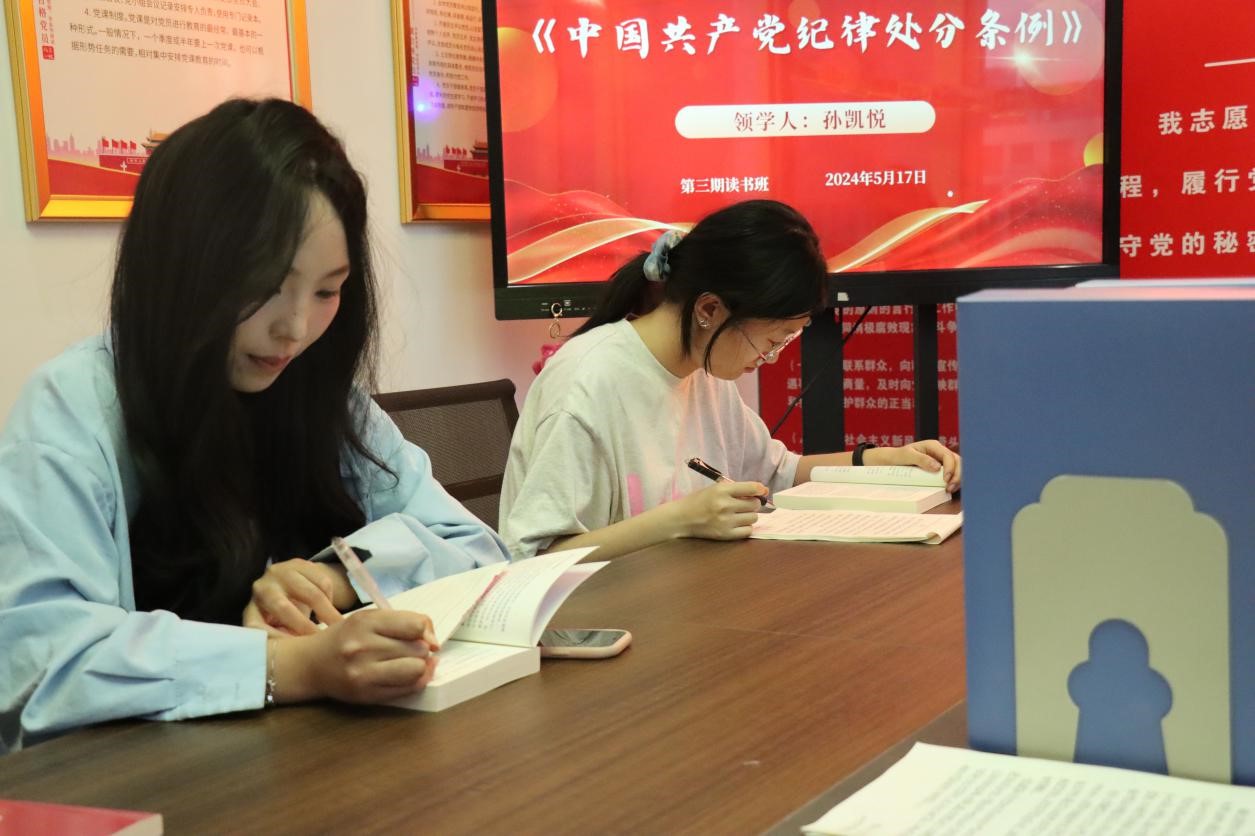 为深入贯彻落实党的二十大精神,进一步教育和引导学生干部学纪、知纪、明纪、守纪,推进党纪学习教育走深走实,5月17日,6776永利集团在诚园4号楼210党团活动室开展了第三期党纪学习教育读书班活动,领学人孙凯悦和靳奉钰带领党员和入党积极分子进行学习。
