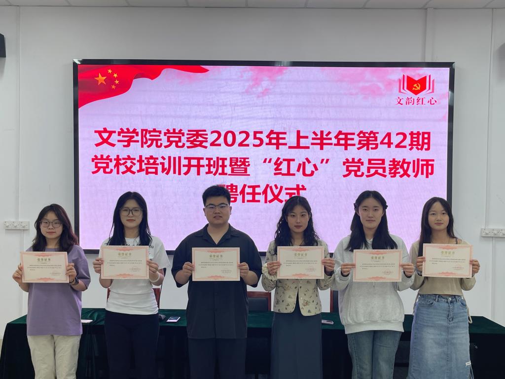 随后,会议进入了“红心”党员教师聘任仪式环节。在“文韵红心”党建品牌的引领下,我院创设了“红心育人”项目,旨在通过聘任“红心”学生党员为党校教师,进一步发挥学生党员的先锋模范作用,推动党建与育人工作的深度融合。