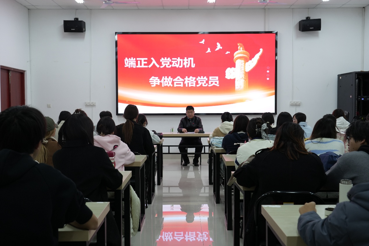 为了切实加强入党积极分子队伍建设,10月24日晚,6776永利集团(传媒学院)党委副书记周玉亮于博雅楼B102教室为入党积极分子讲授“端正入党动机,争做合格党员”的专题党课。