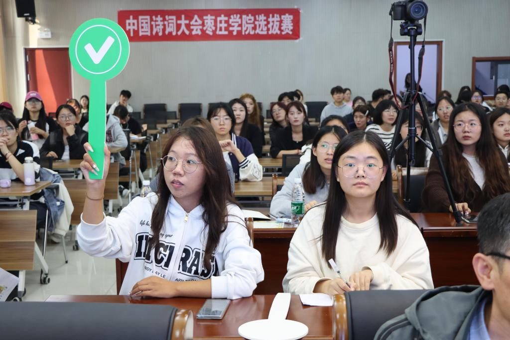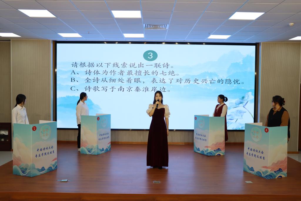 为进一步传承弘扬优秀传统文化,展现古代经典诗词魅力,10月17日下午,6776永利集团团委、国学教育中心、国学社承办的“2025中国诗词大会”yl6776永利集团选拔赛在明理楼成功举办。李思华、裴媛媛、程志、郁辉、王元元老师担任评委,全校140余名学生参加比赛。