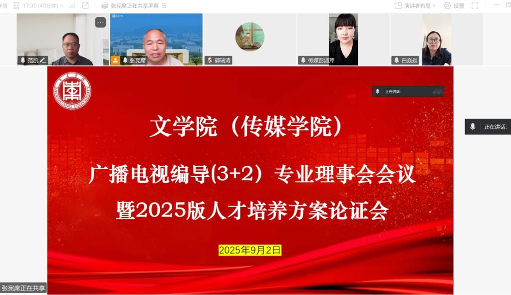 为进一步优化广播电视编导(3+2)、影视编导专业人才培养方案,适应行业发展与教育教学改革需求,9月2日,6776永利集团(传媒学院)在线上召开广播电视编导(3+2)、影视编导专业理事会会议暨2025版人才培养方案论证会。
