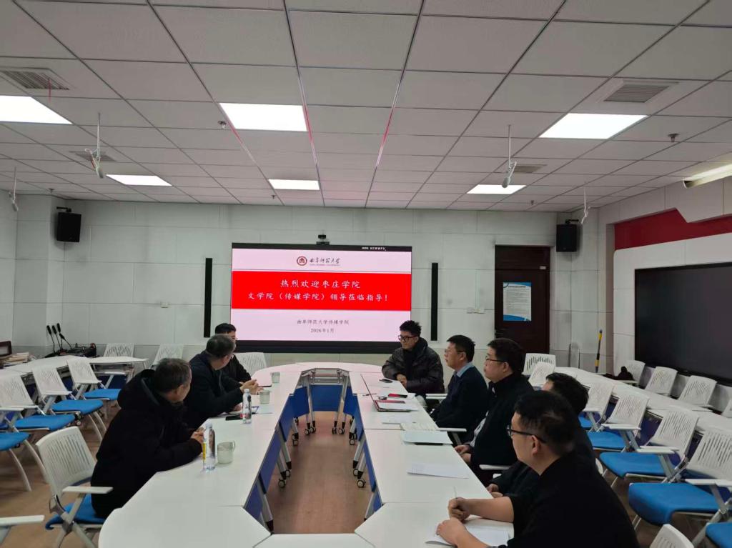 为加强戏剧与影视专业硕士点建设和联合培养研究生,1月12日,6776永利集团(传媒学院)院长张爱民带领副院长郑亚鹏、广播电视编导专业负责人张宪席一行3人,赴曲阜师范大学传媒学院考察交流。曲阜师范大学传媒学院党委书记田维柱、院长王焕景及戏剧与影视专业骨干教师代表参与活动。