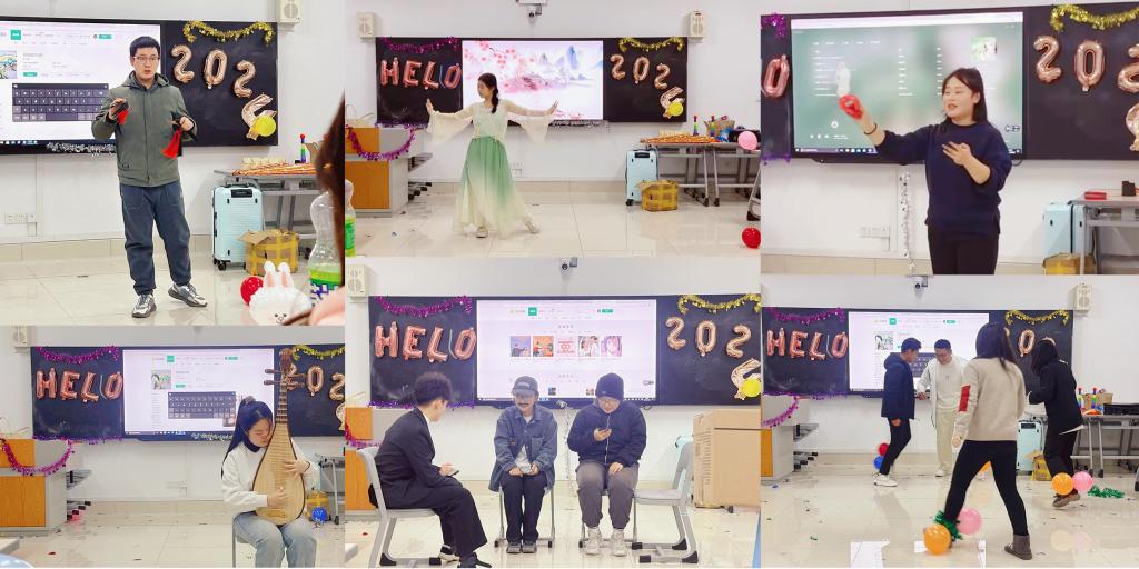 联欢会开始,辅导员张宁老师代表学院向全班同学表达最真挚的新年祝福,并对同学们入校来的认真努力表示肯定,希望大家在新的一年拥有崭新的目标,做好本职工作,共同努力使学院的发展更上一层楼。联欢会上,同学们才华横溢,以歌舞、琵琶、快板和小品等多种形式展示了他们的才艺和创造力。曼妙的舞姿、激扬的弦乐、动人的歌声和幽默的小品赢得了观众们的阵阵掌声。辅导员老师也积极参与其中,与学生们同台献艺,展现了6776永利集团团结和谐的良好氛围。