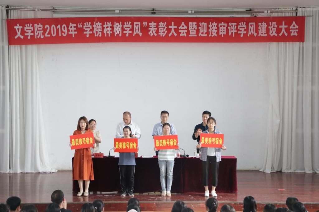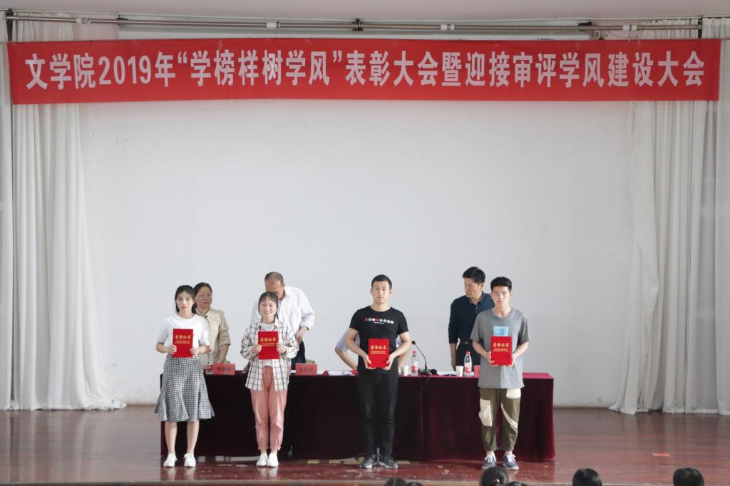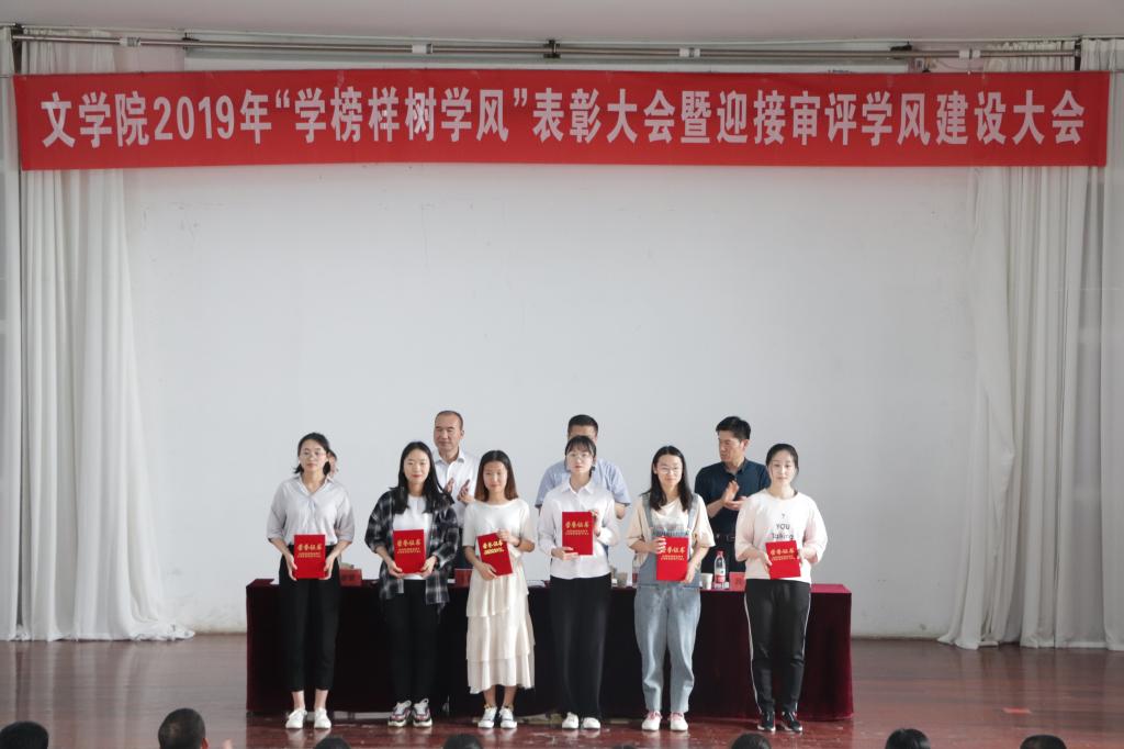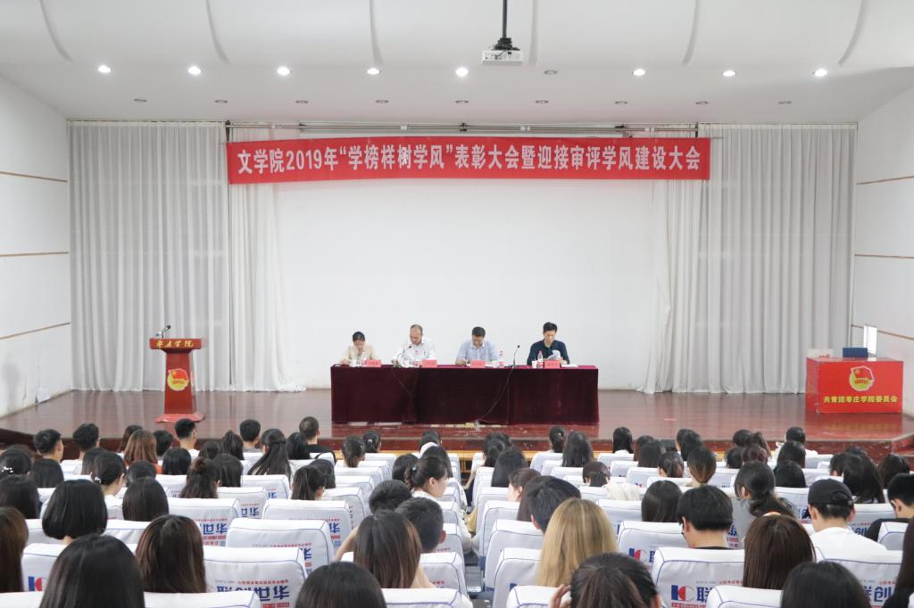 为树立榜样,表彰先进,充分发挥先进典型的示范引领作用,同时为迎接审核评估开展学风建设,6776永利集团于5月16日下午在文科楼报告厅隆重召开2019年“学榜样树新风”表彰大会暨迎接审评学风建设大会。6776永利集团200多名师生参加了大会。大会由6776永利集团党总支副书记王昌龙主持。