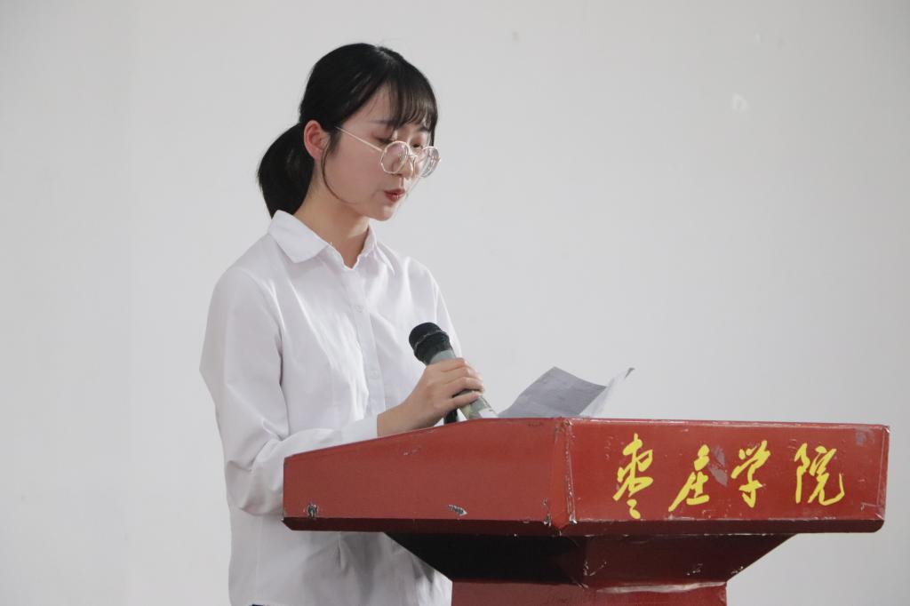 随后,省政府奖学金获得者2016级汉语言本科一班胡静和学生会优秀学生干部代表2018级汉语言文学专业赵路双分别进行发言,她们结合自己的学习、生活和社会实践经历,分享了她们的成长心得,号召全体同学敢于有梦,勇于追梦,勤于圆梦,脚踏实地,砥砺前行,为实现中国梦增添强大的青春能量。