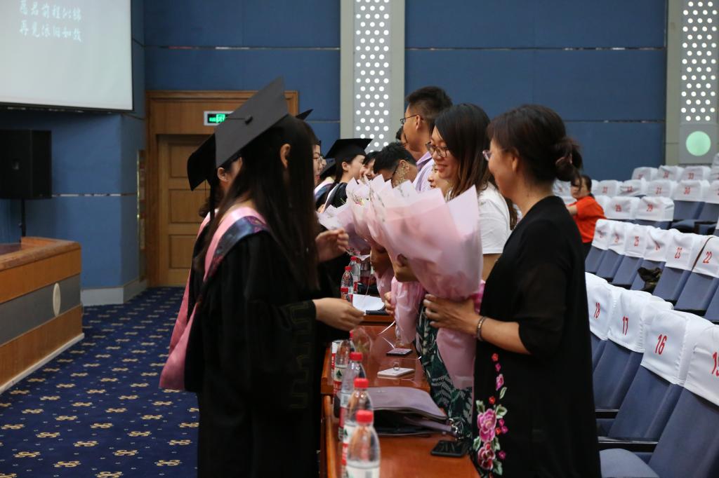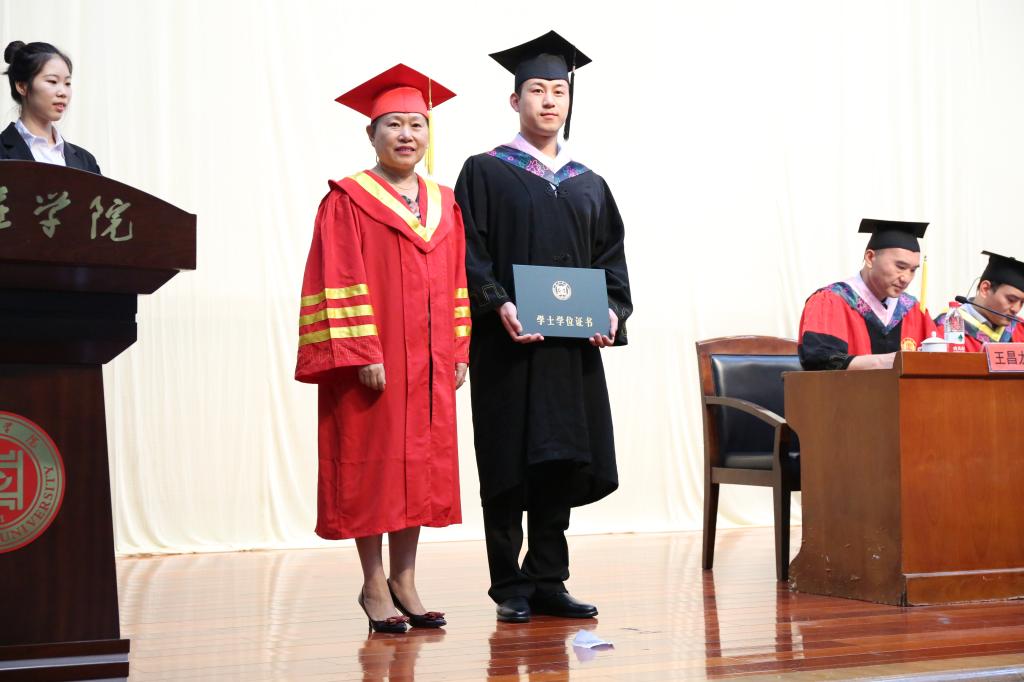 典礼在庄严的国歌奏唱中拉开序幕。在段圣玉宣读了《yl6776永利集团关于授予李春萌等138名6776永利集团2019届普通全日制本科毕业生学士学位的决定》后,李丽清亲自为全体本科毕业生一一拨穗并颁发学士学位证书,合影留念并送上祝福。随后,毕业生代表以诗歌朗诵的形式,饱含深情地感恩母校,感激恩师,祝福同学,展望未来。毕业生为教师代表送上美丽的鲜花,表达对老师的崇高敬礼。李思华老师代表全体老师为毕业生送上了殷切嘱托和深情祝福,希望同学们始终保持一份痴气、傲气与和气,向着自己的目标扬帆远航。最后,史大丰代表6776永利集团向圆满完成学业的360名毕业生表示最热烈的祝贺和诚挚的感谢,并希望他们始终坚持理想,保持年轻人的激情和信念,不忘初心、砥砺奋斗,前程似锦、鹏程万里。