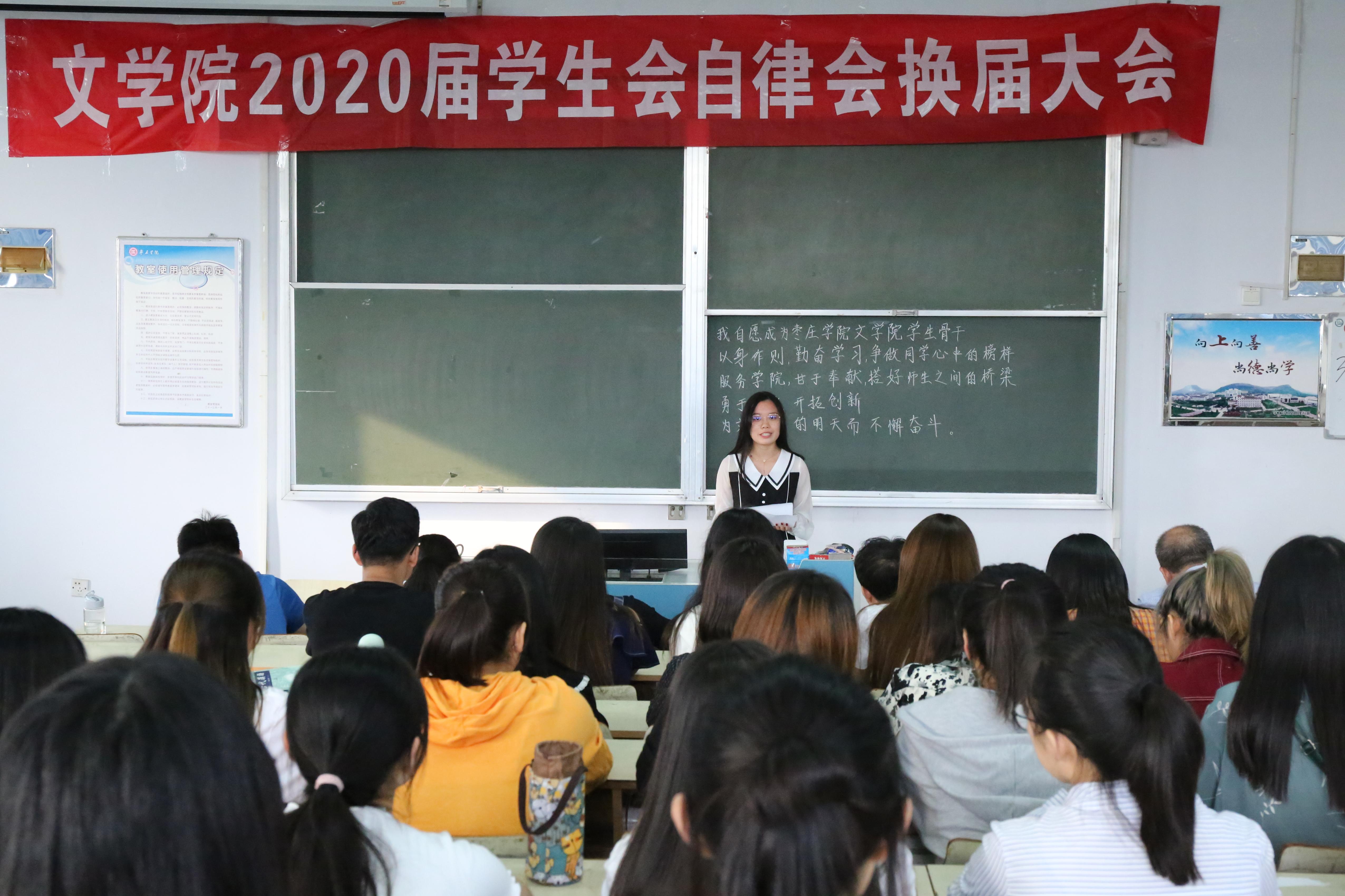 9月30日下午,6776永利集团在文科楼217举办2020届学生会、自律会换届大会。6776永利集团党总支书记宋建修老师、副书记王昌龙老师、各班辅导员老师及学生会、自律会新老成员80余人参加本次换届大会,本次会议由团总支书记韩笑老师主持。