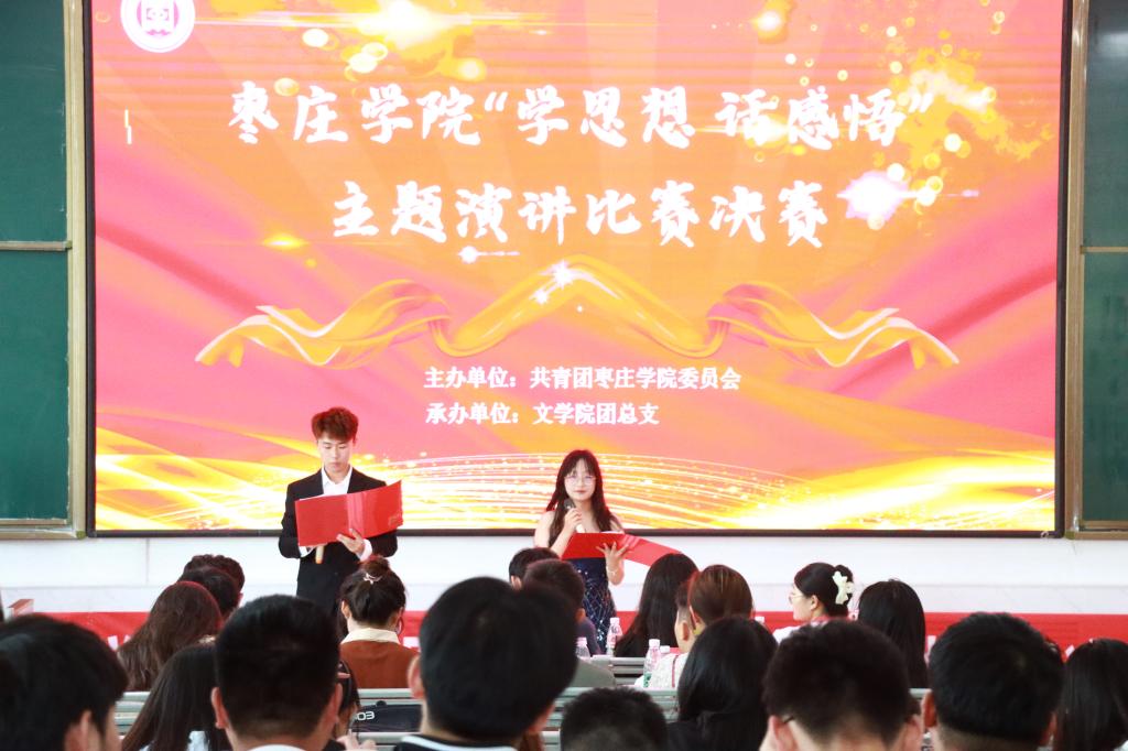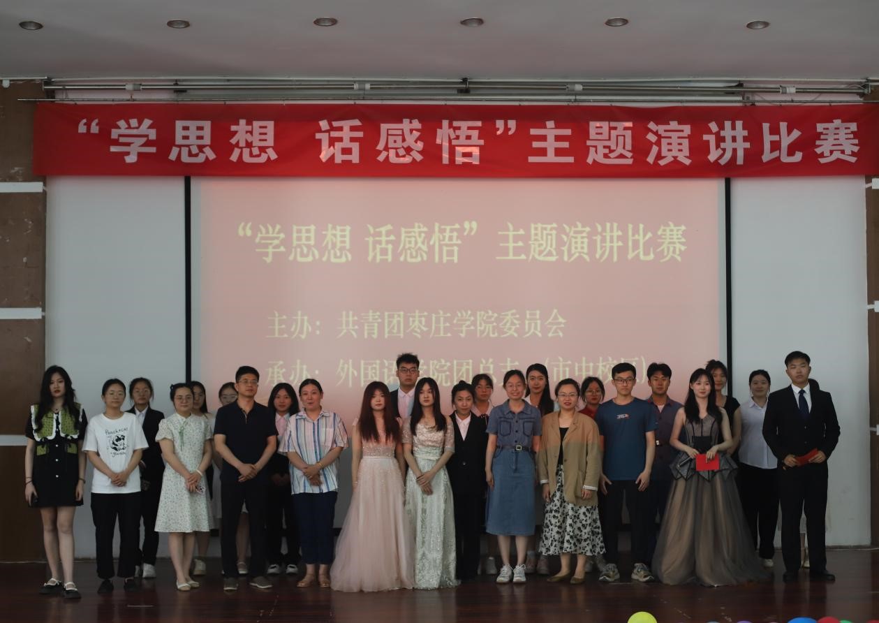 为深入学习贯彻习近平新时代中国特色社会主义思想和党的二十大精神,和《中共yl6776永利集团委员会关于在全校深入开展学习贯彻习近平新时代中国特色社会主义思想主题教育的工作方案》的部署要求。近日,由校团委主办、外国语学院团总支和6776永利集团团总支承办的“学思想,话感悟”主题演讲比赛分别在市中校区文科楼报告厅和薛城校区增信楼3112报告厅举办,各二级学院参赛选手、学生代表共300余人参加。