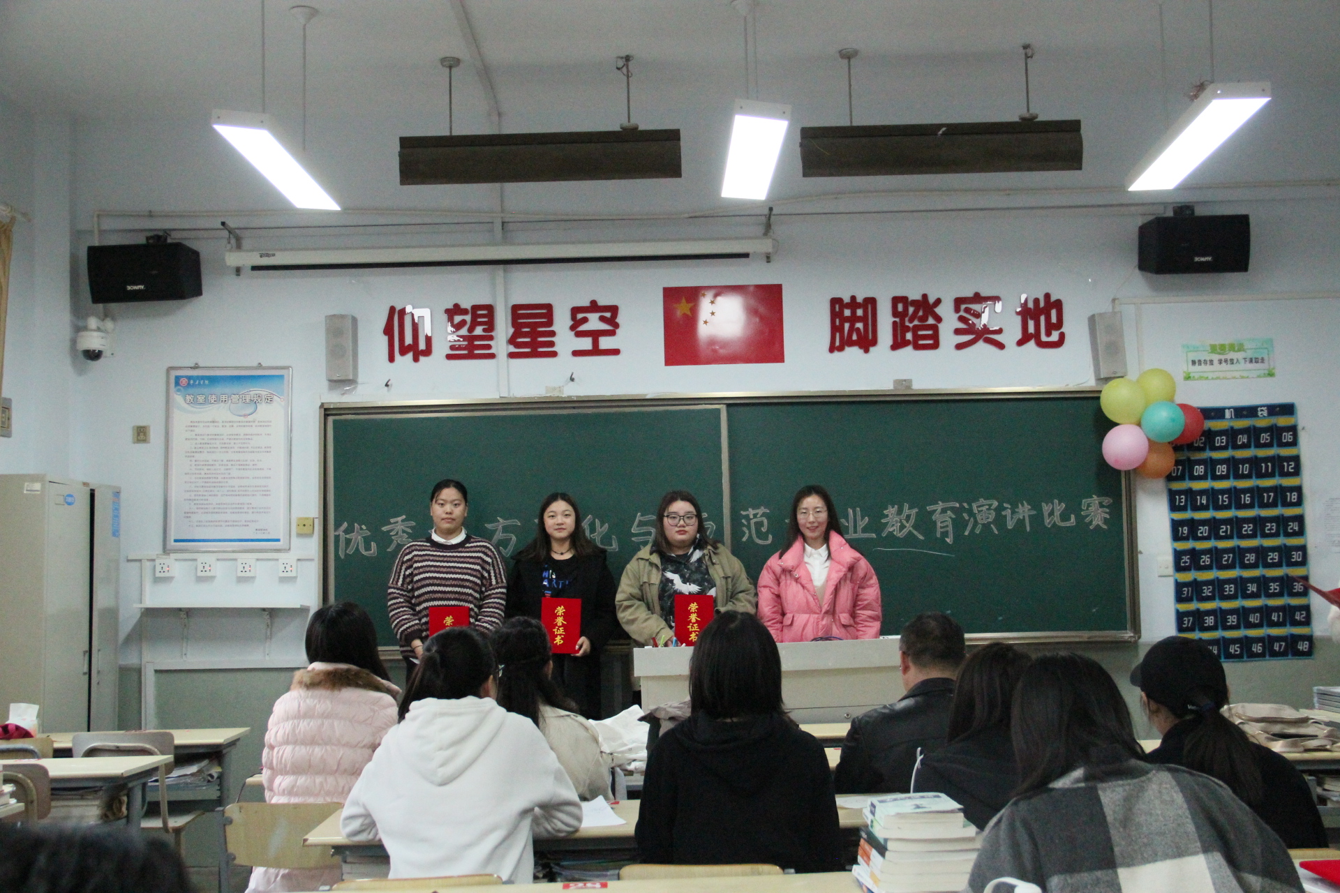 最终,经过激烈的角逐,宋元敏同学获得本次演讲大赛一等奖,付莹、陶然、鹿康宁同学获得二等奖,刘依旖、毛思怡、王潇同学获得三等奖,刘新湛、魏元慧、潘明月等同学获得本次大赛优秀奖。此次比赛通过演讲的形式,切实提高了师范专业学生的演讲技能和水平。同时将优秀的地方文化,融入到师范专业教育学习与人才培养中去。进一步做好了我院演讲与口才方面的专业实训工作,为我院师范专业发展奠定了良好基础。