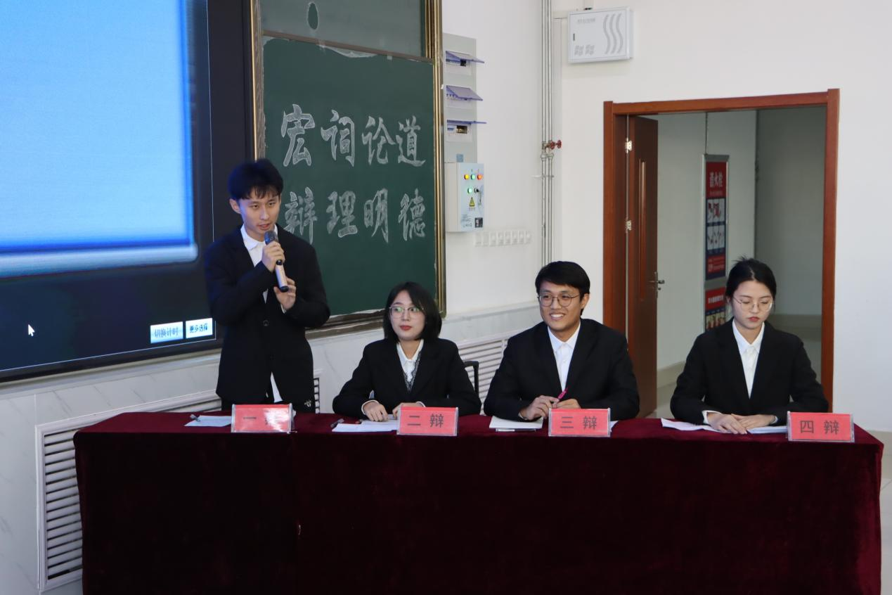 11月27日下午,yl6776永利集团第十一届“宏辞论道辩理明德”大学生辩论赛决赛在增信楼211室成功举办。辩论赛由共青团yl6776永利集团委员会、yl6776永利集团关工委主办,6776永利集团团委、机电工程学院团委承办,6776永利集团蓝风诗语社、南离播音主持社、机电工程学院工业设计协会协办。经济与管理学院团委书记张璇、旅游与资源环境学院辅导员冯淑娟、外国语学院辅导员邱鑫磊与经济与管理学院辅导员亓贵芝、yl6776永利集团学生社团管理中心主任张羽姗与团委新媒体中心主任孔令宿出席本次辩论赛并担任评委。