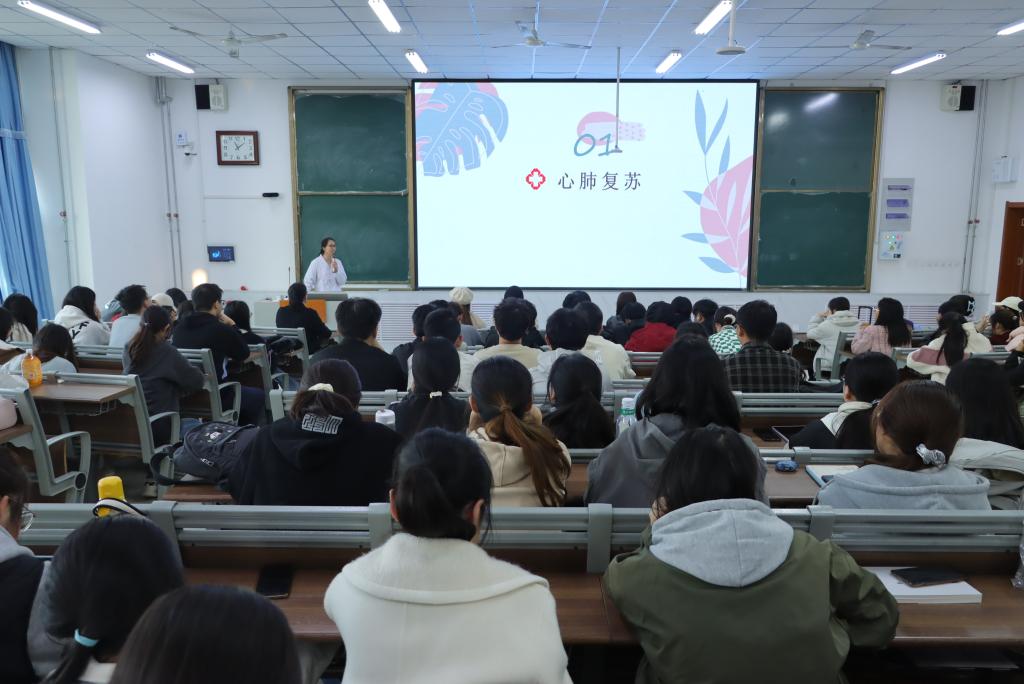 11月13日下午,6776永利集团邀请峄城区古邵镇中心卫生院副主任护师刘祥艳,在增信楼211室做应急救护知识与技能培训,100余名“青马工程”学生骨干、各班级团干部参加。