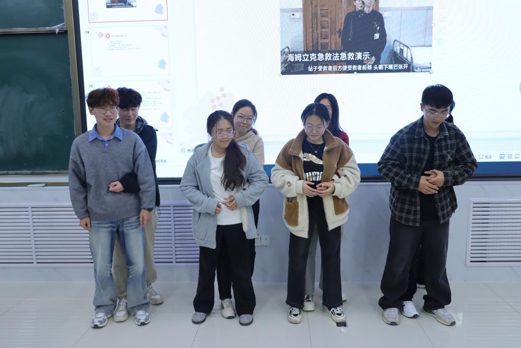 培训现场,刘祥艳还邀请学生们上台实操,对操作中出现的不规范做法进行纠正,手把手教学,有效增强了同学们的急救意识,提高了应对突发事件和意外伤害的应变能力,也为自己和身边的人加上一道生命的屏障,营造了“人人学急救,急救为人人”的良好氛围。