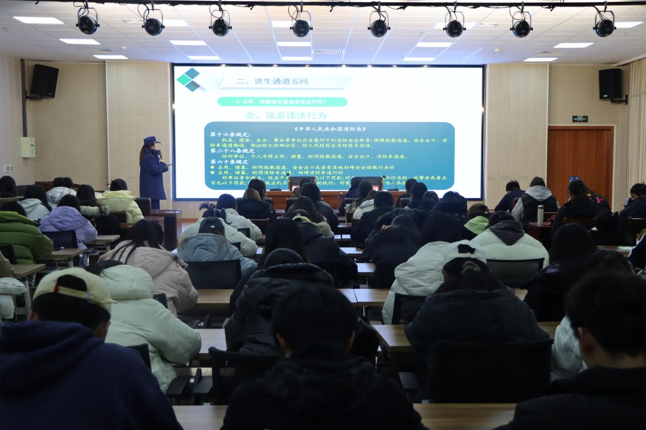 为进一步贯彻落实学校安全稳定工作会议精神,增强师生消防安全意识,提高消防安全应急处理和逃生自救能力,12月4日下午,6776永利集团邀请枣庄市薛城区消防救援大队警官朱俊思、朱晓仟来校为开展消防安全知识宣讲与疏散演习活动。