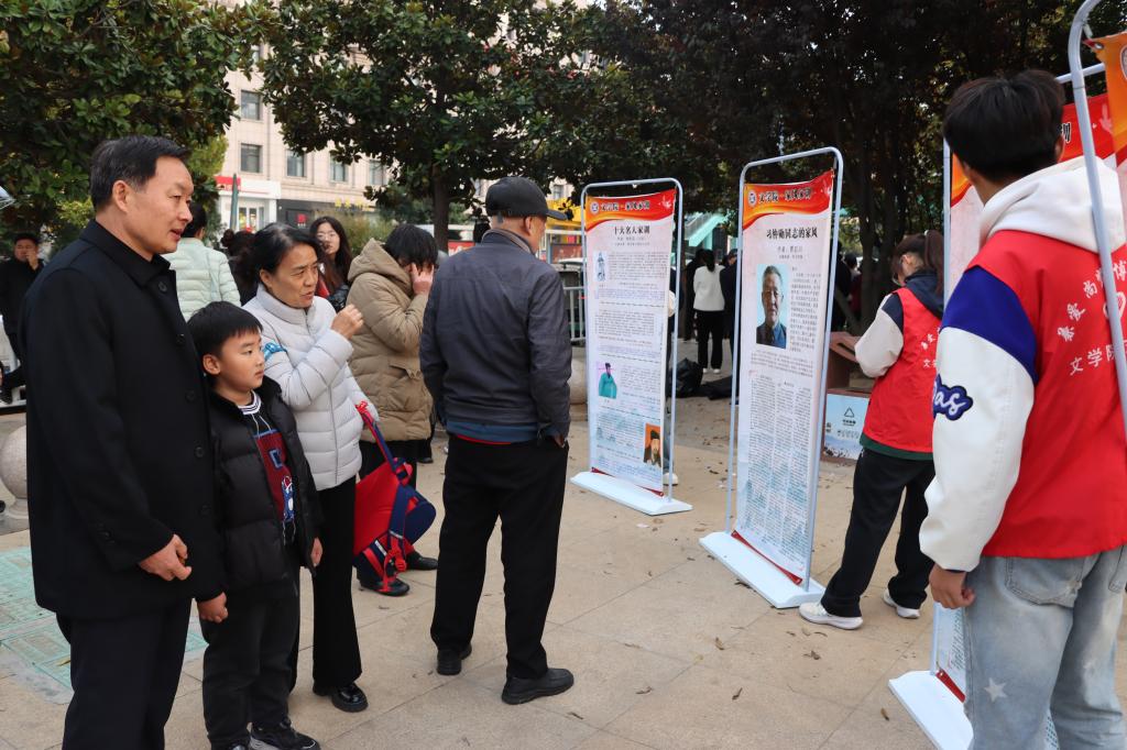 宣讲团成员统一身着红色马甲,分别赴兴仁街道、西界沟村、龙潭实验学校和铁道游击队纪念广场等地,在行人密集处摆放提前制作的家风家训易拉宝,采取“集中讲解+分散宣传”的方式,讲解老一辈革命家毛泽东、朱德等人和古代十大名人的家风家训,用通俗易懂的语言介绍司马光教子有方、吉鸿昌不忘父训等践行良好家风的典型案例,还通过分享生动的案例和自我成长故事,让居民感受到良好的家风家训在家庭建设中的重要作用。