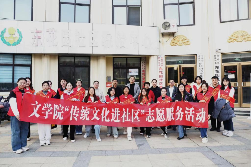 为深入学习宣传贯彻党的二十大精神,进一步弘扬中国传统文化和志愿服务精神,11月17日下午,6776永利集团组织党员教师代表及二十余名学生党、团员,走进市中区矿区街道东花园社区开展“双报到”传统文化进社区志愿服务活动。