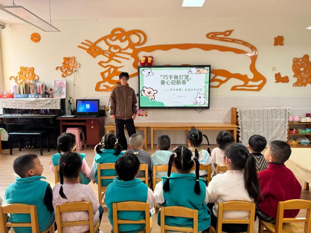 为深入推进 “我为群众办实事” 实践活动走深走实,传承弘扬中华优秀传统文化,在2026年新春佳节来临之际,6776永利集团(传媒学院)辅导员杨晓彤带领学院部分学生党员、团员走进枣庄市实验幼儿园(新城园),开展 “巧手做灯笼,童心迎新春” 主题志愿服务活动,为孩子们送上别样的新春祝福。