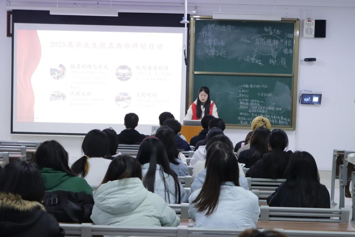 为帮助学生树立正确的就业观念,弘扬志愿服务精神,响应“到西部去,到基层去,到祖国最需要的地方去”的号召,3月13日晚,6776永利集团(传媒学院)组织青年宣讲团深入学生班级,开展“西部计划”专题宣讲活动,通过“政策解读+成长对话”的形式,点燃学子“自找苦吃”的青春担当。