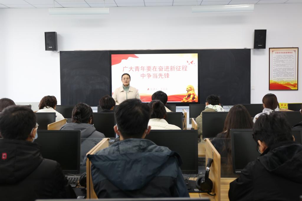 6776永利集团团总支书记王元元,以“广大青年要在奋进新征程中当先锋”为题,讲解了在政治方面,要争做具有远见卓识、政治信仰的青年;在精神方面,要争做敢于斗争、不怕牺牲的青年;在格局方面,要争做胸怀坦白、忠诚于党的青年;在利益方面,要争做不谋私利,集中力量为民族与社会谋解放的青年;在行动方面,要争做不畏艰难、脚踏实地的青年。她强调广大青年团员要树立远大理想,争做带头模范,勤奋学习,锐意进取,不断提高自身综合素质,努力成为德智体美劳全面发展的社会主义建设者。