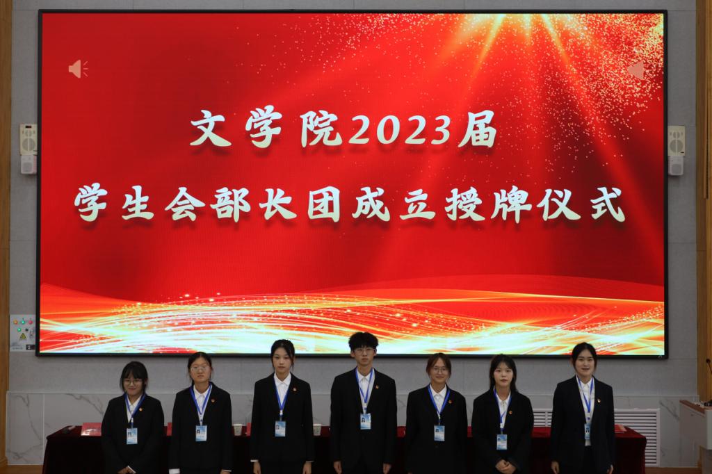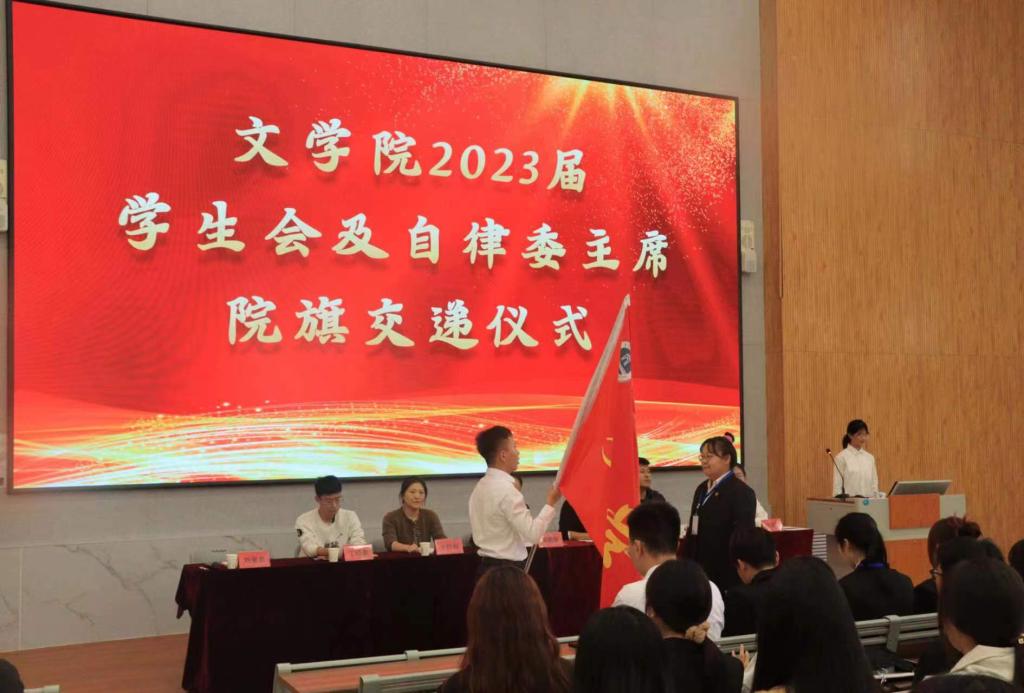 大会在嘹亮的国歌声中拉开帷幕。2022届学生会主席时爱芬、自律委主席刘家名分别宣读了《6776永利集团2023届学生会成员名单》和《6776永利集团2023届自律委成员名单》。随后,分别给新任学生会、自律委主席团及各部部长挂牌,院旗交接仪式,代表着学院精神的传承、学生组织火种的传递。