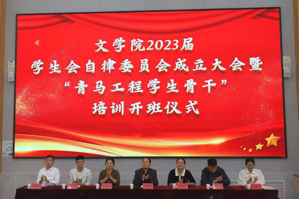 10月25日下午,6776永利集团在增信楼113室,隆重召开“2023届学生会、自律委员会”成立大会暨“青马工程学生骨干”培训开班仪式,院党总支书记宋建修,全体辅导员及200余名学生代表参加。