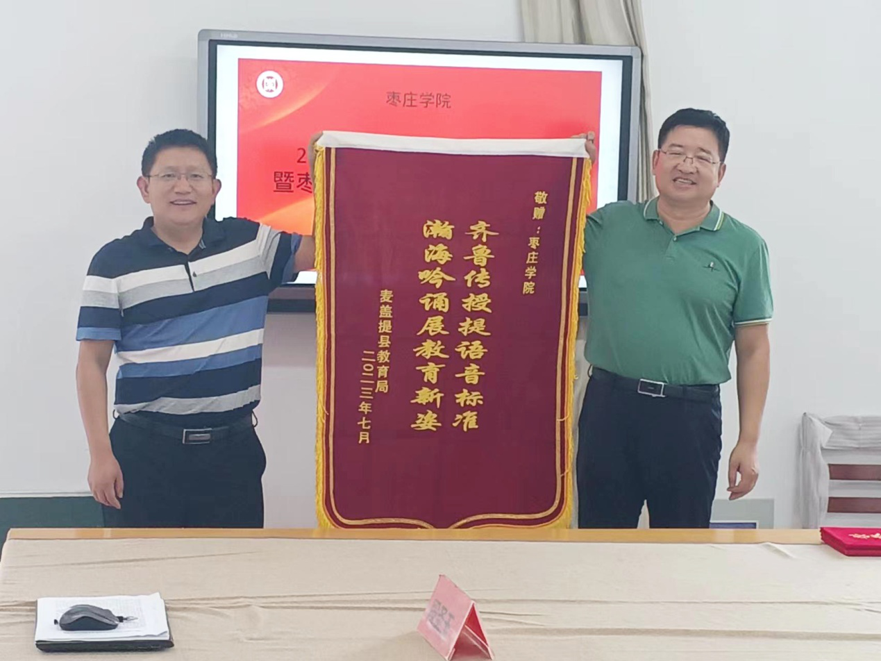 6776永利集团院长张爱民首先致辞,他说,根据省语委办工作部署,yl6776永利集团与麦盖提县组成对口培训团队,对麦盖提县职业学校、中小学、幼儿园的部分教师进行了为期十天的国家通用语言文字能力提升线下集中培训。在麦盖提县教育局、yl6776永利集团培训团队和全体学员的共同努力下,培训取得了良好的效果。同时,为提高枣庄市幼儿园教师及保育员普通话水平,增强其职业素养与教育能力,根据山东省教育厅文件精神,yl6776永利集团与枣庄市教育局密切合作,组织开展了2023年枣庄市幼儿园教师和保育员普通话培训,精心组织,严格施训,保证了培训顺利完成。其后培训项目负责人姜夫军老师、葛婷老师、优秀助教朱惠英分别发言,教务处副处长李宏运宣读了优秀助教名单,领导为优秀助教颁发了证书。最后,教务处处长房永磊讲话,他指出,yl6776永利集团领导高度重视对口麦盖提县教师国家通用语言文字能力提升线下集中培训和2023年枣庄市幼儿园教师及保育员普通话培训,多次召开专题工作会议,协调相关部门单位,提高政治站位,明确职责分工,周密协同、主动作为,专门组建了由国家级、省级普通话水平测试员作为授课主讲教师的优秀培训团队和以普通话二甲以上水平、具有丰富支教经验的优秀师范生助教团队,严格根据要求规范培训,确保了培训任务的圆满完成。今后,我校将科学谋划、统筹部署,健全工作机制,完善工作措施,积极做好国家通用语言文字培训,提高参训学员的国家通用语言文字素质和从业能力。