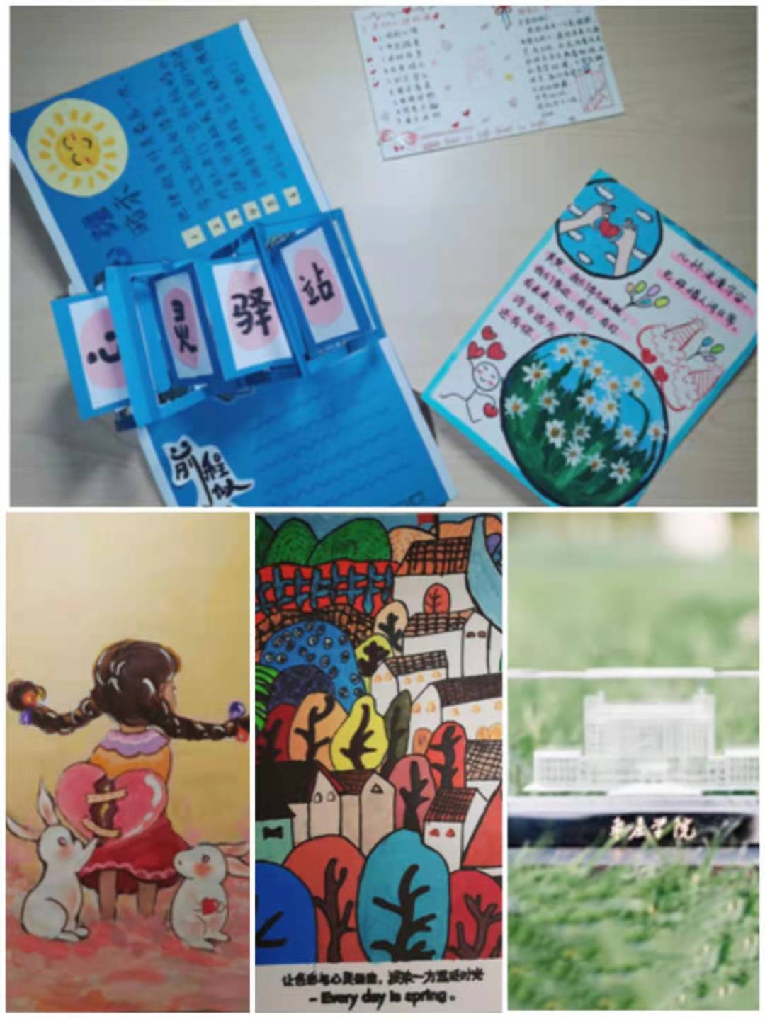 本次活动别出心裁,学生们通过设计明信片、温情寄语、漫画绘制等形式,开启了一场奇妙的心灵之旅,明信片寄语过去或未来的自己,漫画尽显“梦想”“适应”“人际和谐”等主题,学生们用文字和图画讲述自我成长的心路历程,展现自己的内心世界、美好祝愿和生活理想,表达自己对爱、温情和心理健康的理解。最终,明信片作品推选出一等奖2名,二等奖4名,三等奖4名;漫画作品推选出一等奖2名,二等奖3名,三等奖3名。