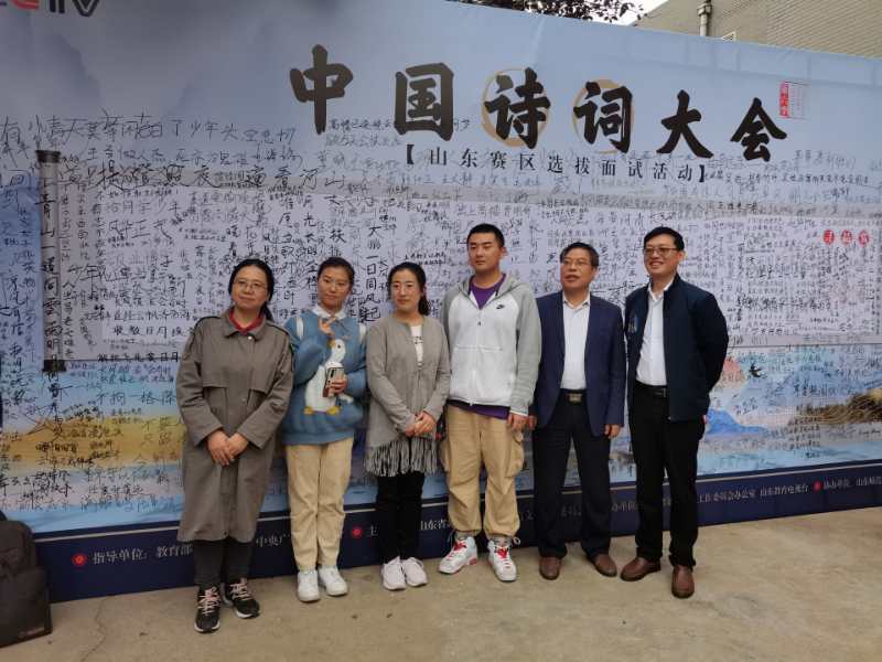 2020月10日,《中国诗词大会》(第六季)山东赛区现场选拔活动在山东师范大学举办。在yl6776永利集团创新创业学院王守兴院长带领下,枣院共5名师生参加了这次比赛。他们中有古诗词资深爱好者——经管学院的韩科峰老师、6776永利集团郁辉老师,还有热爱古诗词的美院学子刘津竹以及6776永利集团的万德梁、于兵奇两位同学。