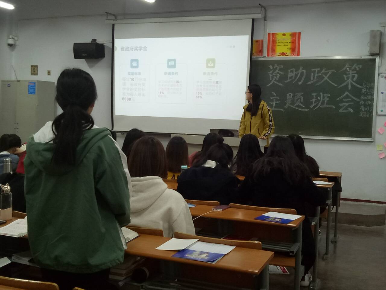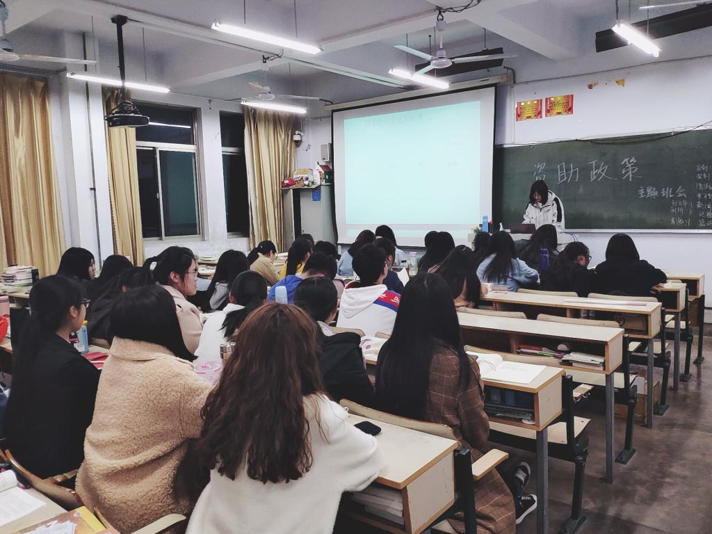 各班就困难生认定、国家奖助学金、勤工助学、高校学生应征入伍学费补偿、“建档立卡”家庭经济困难学生学费减免等资助政策进行了详细解读,并对学生提出的相关问题进行了答疑解惑。