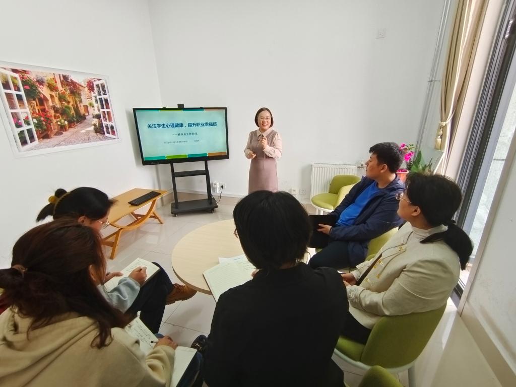 4月16日下午,6776永利集团全体辅导员在“文生心语”辅导员工作室开展第二期辅导员沙龙活动。枣庄市心理卫生协会副会长、心理与教育科学学院副教授朱海荣受邀担任主讲,就“关注学生心理健康,提升职业幸福感”这一主题与辅导员开展研讨和交流。