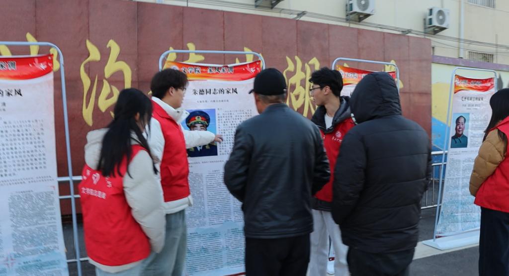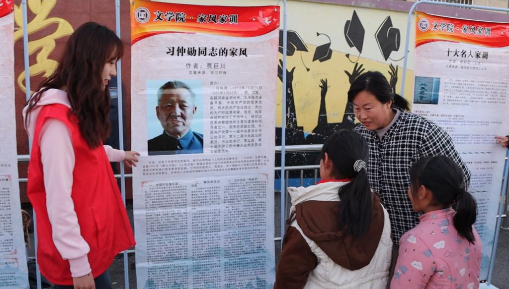 活动当天,宣讲团提前来到活动现场,身着统一的红色马甲,结合自身实际,用通俗易懂的语言向过往的居民和学生介绍践行良好家风的典型案例,其中既有司马光教子有方、吉鸿昌不忘父训等经典故事,也有毛泽东、周恩来、陈云等老一辈无产阶级革命者的红色家风故事。通过故事讲解,让在场每一个人都深刻感受到到良好家风家训在塑造人物品德、促进家庭和谐、构建社会文明中的重要性。