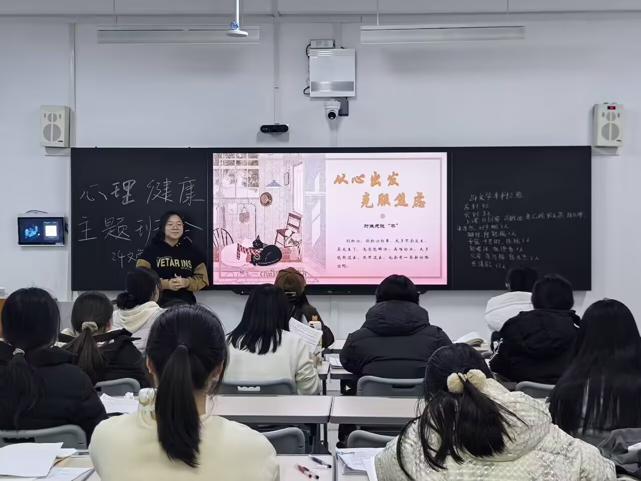 随着期末考试的临近,为了缓解同学的焦虑情绪,增强他们的心理调适能力,6776永利集团于12月20日组织各班级开展了“从心出发,克服焦虑”为主题的心理健康缓解主题班会。