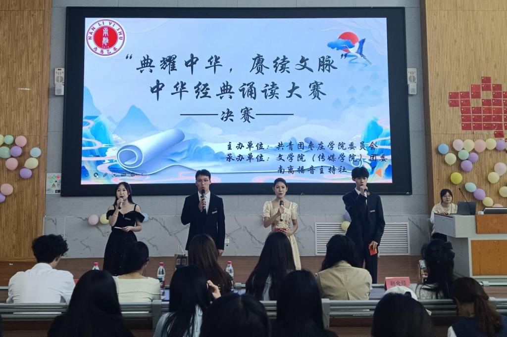 为弘扬中华优秀传统文化,彰显当代大学生文化自信,4月20日,6776永利集团(传媒学院)和南离播音主持社共同承办的“典耀中华,赓续文脉”中华经典诵读大赛决赛在增信楼3113成功举办。