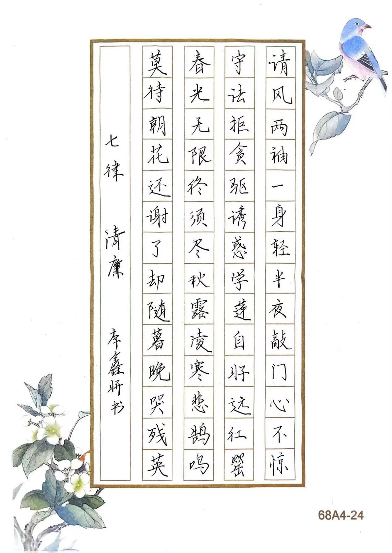 参赛选手紧扣主题,从领悟廉洁精神、聚焦青年修身、展望清正社会三个维度展开创作,通过书法、绘画、设计等艺术形式,生动展现了廉洁奉公的典型事例。经评审,共评选出一等奖3名、二等奖7名、三等奖9名。