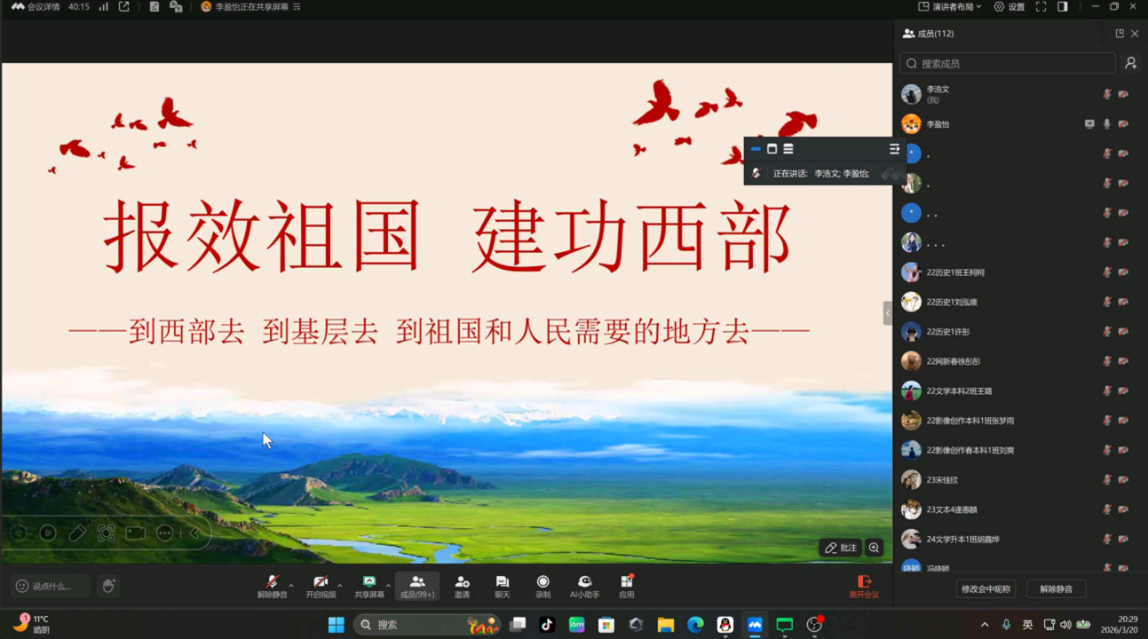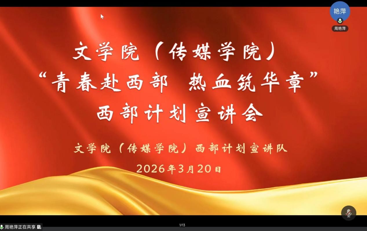 为积极响应国家西部建设号召,推动2026年西部计划招募工作有序开展,320日,6776永利集团(传媒学院)举办“青春赴西部 热血筑华章”西部计划线上宣讲会,学院100余名师生参加。