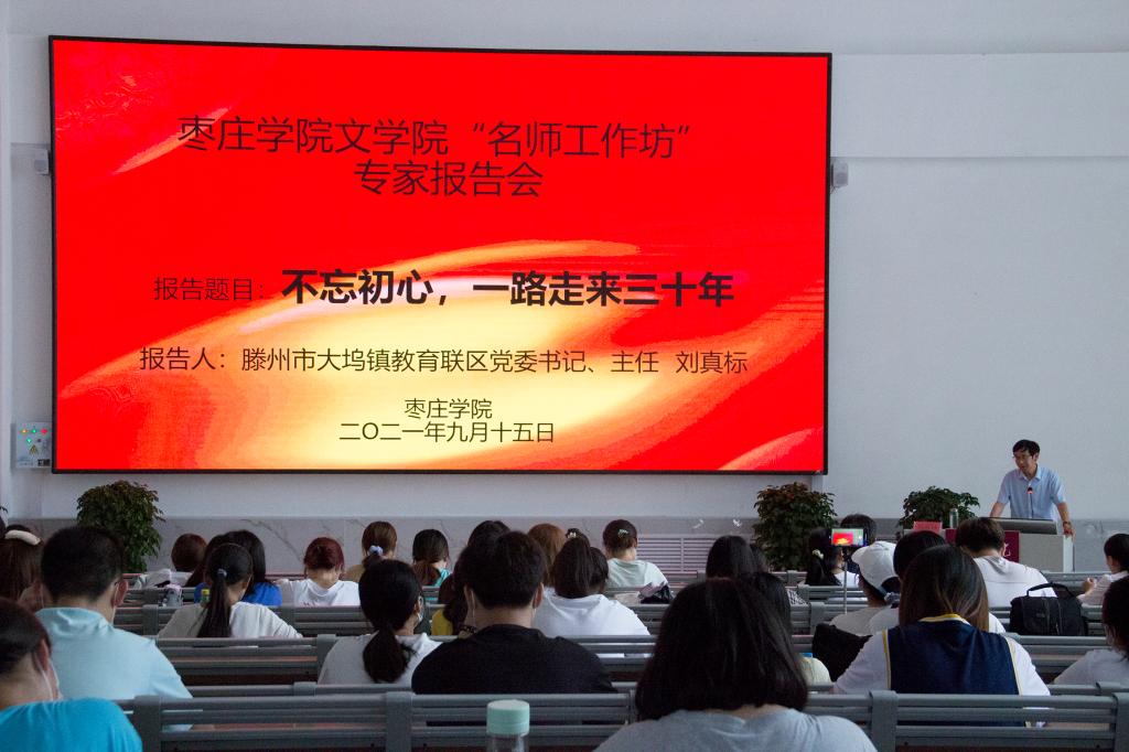 为了培育师范生的良好师德,提高专业素养与教育教学能力,9月15日下午,6776永利集团于增信楼报告厅3113室举行了“名师工作坊”专家报告会。本次报告会由6776永利集团副院长段圣玉主持,滕州市大坞镇教育联区党委书记、主任刘真标主讲,6776永利集团师生200余人与会聆听报告。