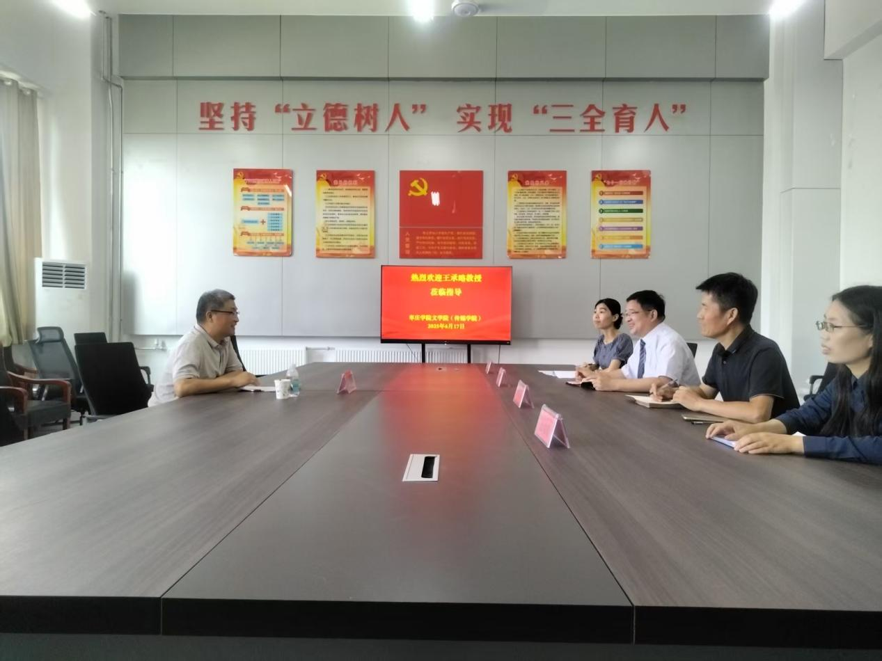 为深入推进6776永利集团(传媒学院)学科建设与科学研究工作,2025年6月17日下午,山东大学儒学高等研究院王承略教授受邀专程赴6776永利集团(传媒学院)传经送宝指导工作,在博雅楼214会议室,张爱民、段圣玉、裴媛媛、王琨等与会听取报告。