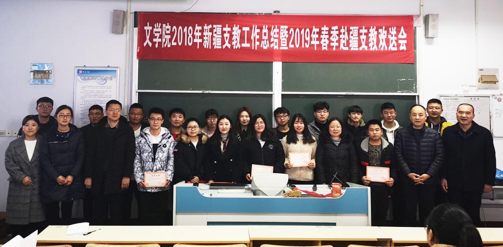 2月27日下午,6776永利集团在文科楼217室举行了2018年新疆支教工作总结暨2019年春季赴疆支教欢送会。学院党政领导、辅导员老师、2018年新疆支教归来的18名同学及2019年上半年即将奔赴新疆喀什的32名同学参加了会议。院党总支副书记王昌龙主持了会议。