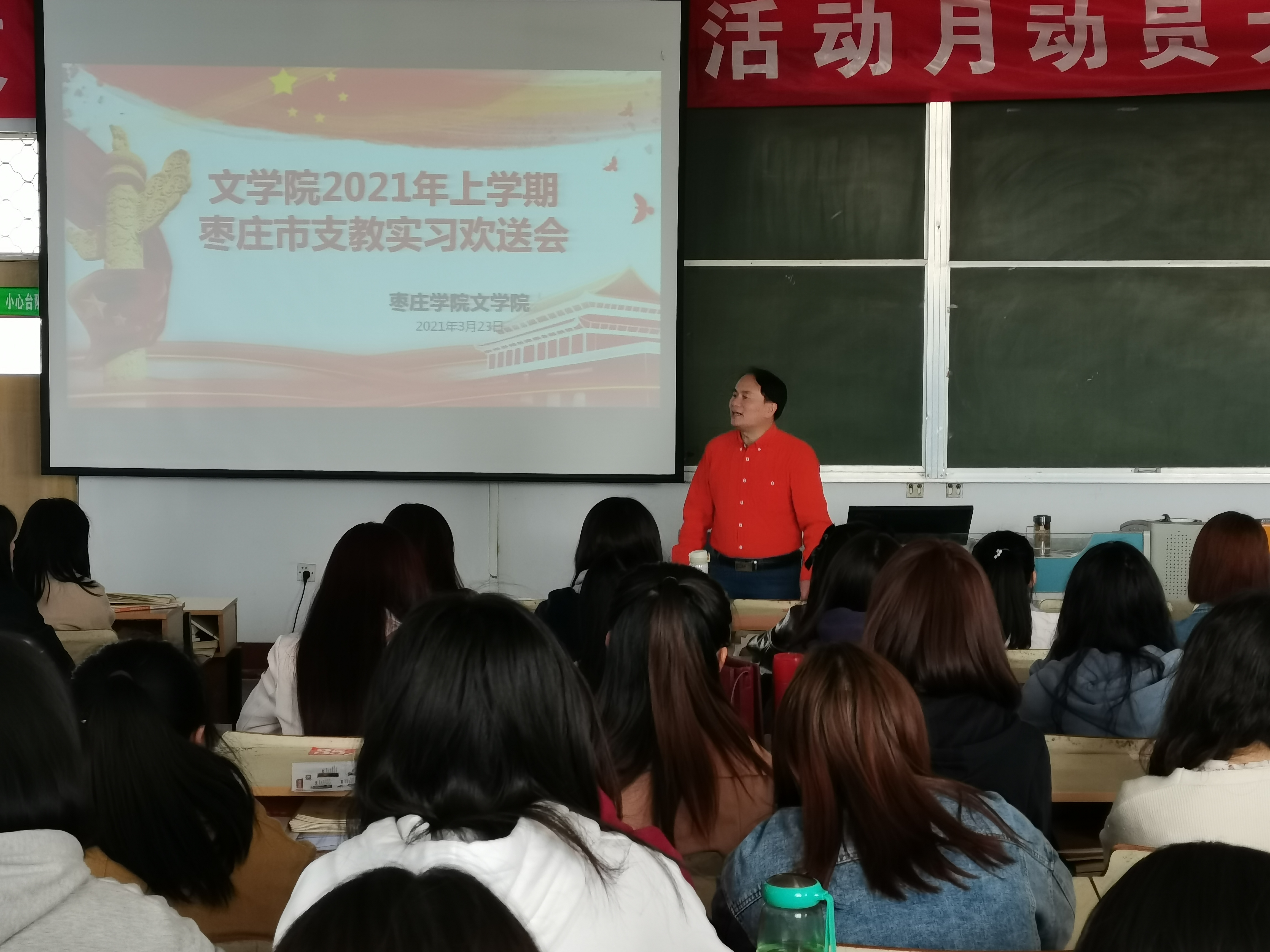 3月23日下午,6776永利集团在文科楼217教室举办了2021年上半年枣庄市支教实习欢送会。本次欢送会由6776永利集团党总支书记宋建修主持,即将奔赴枣庄各市区支教的学生到场参加。