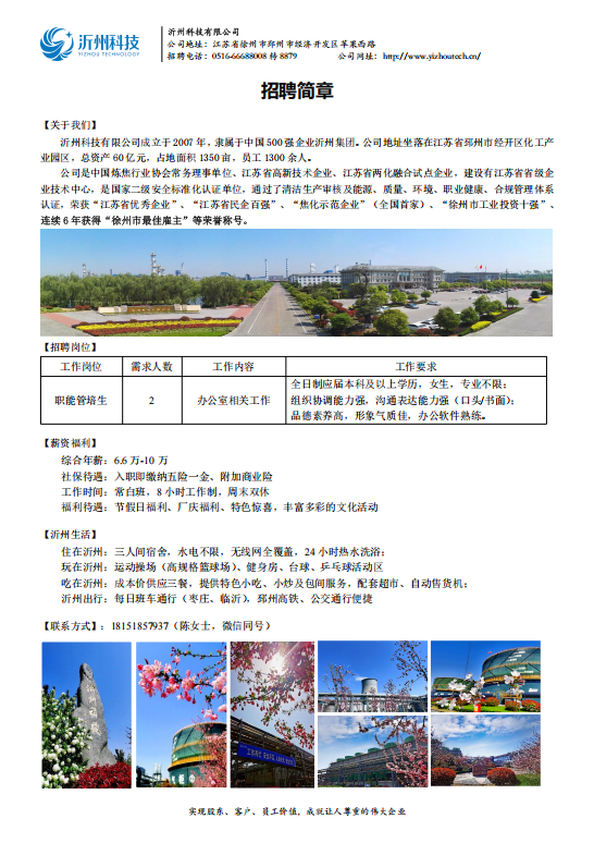 沂州科技有限公司招聘简章
