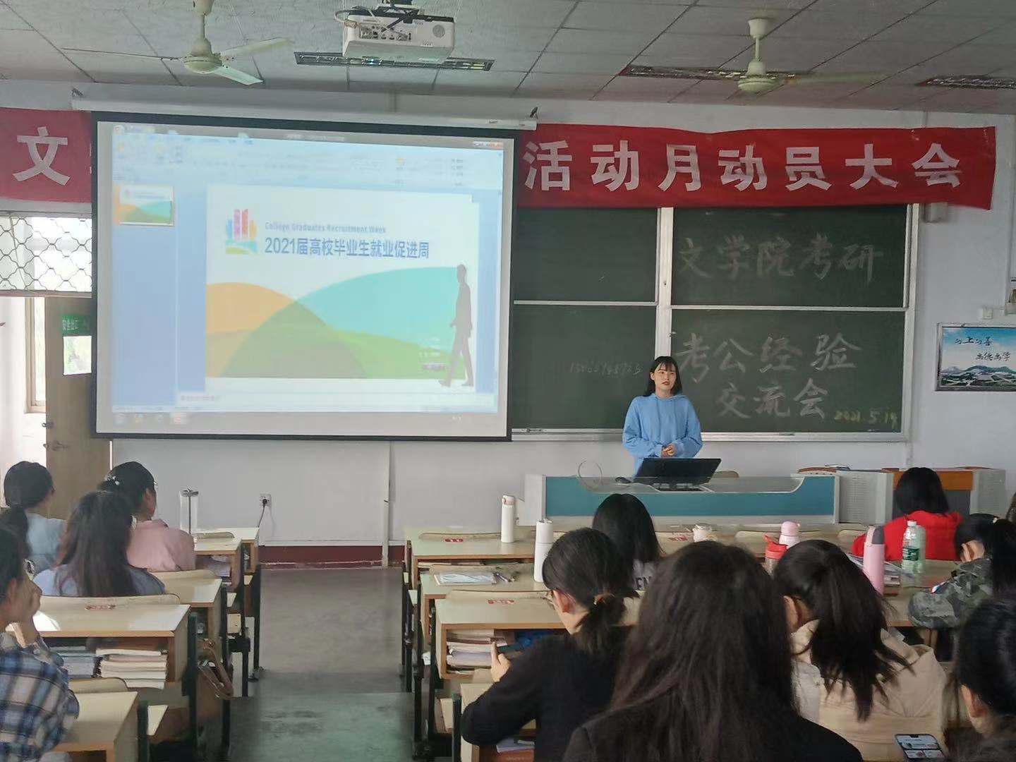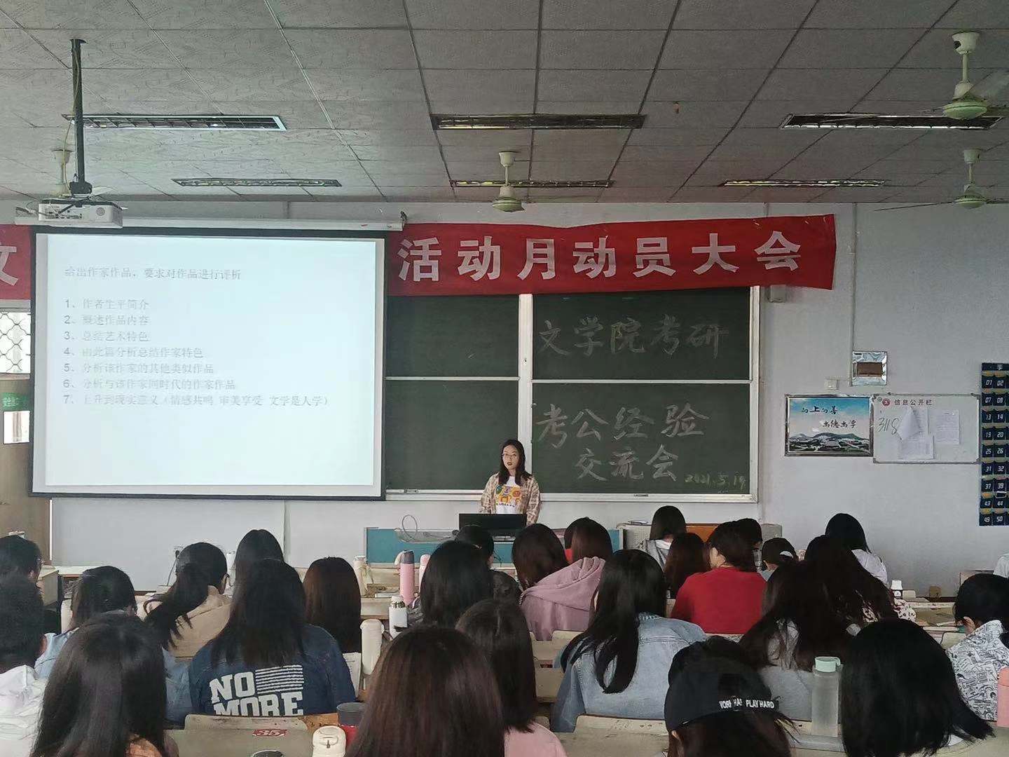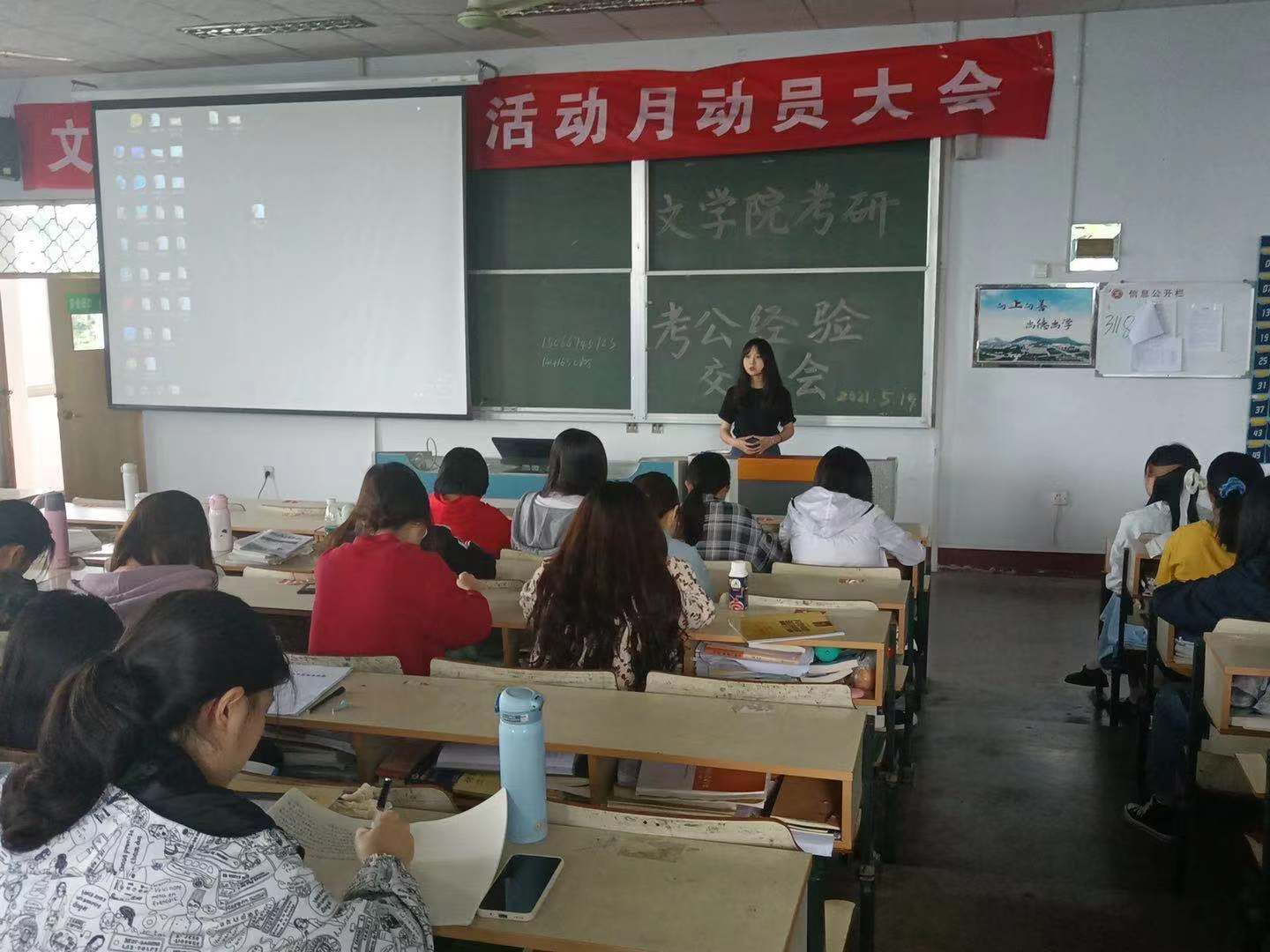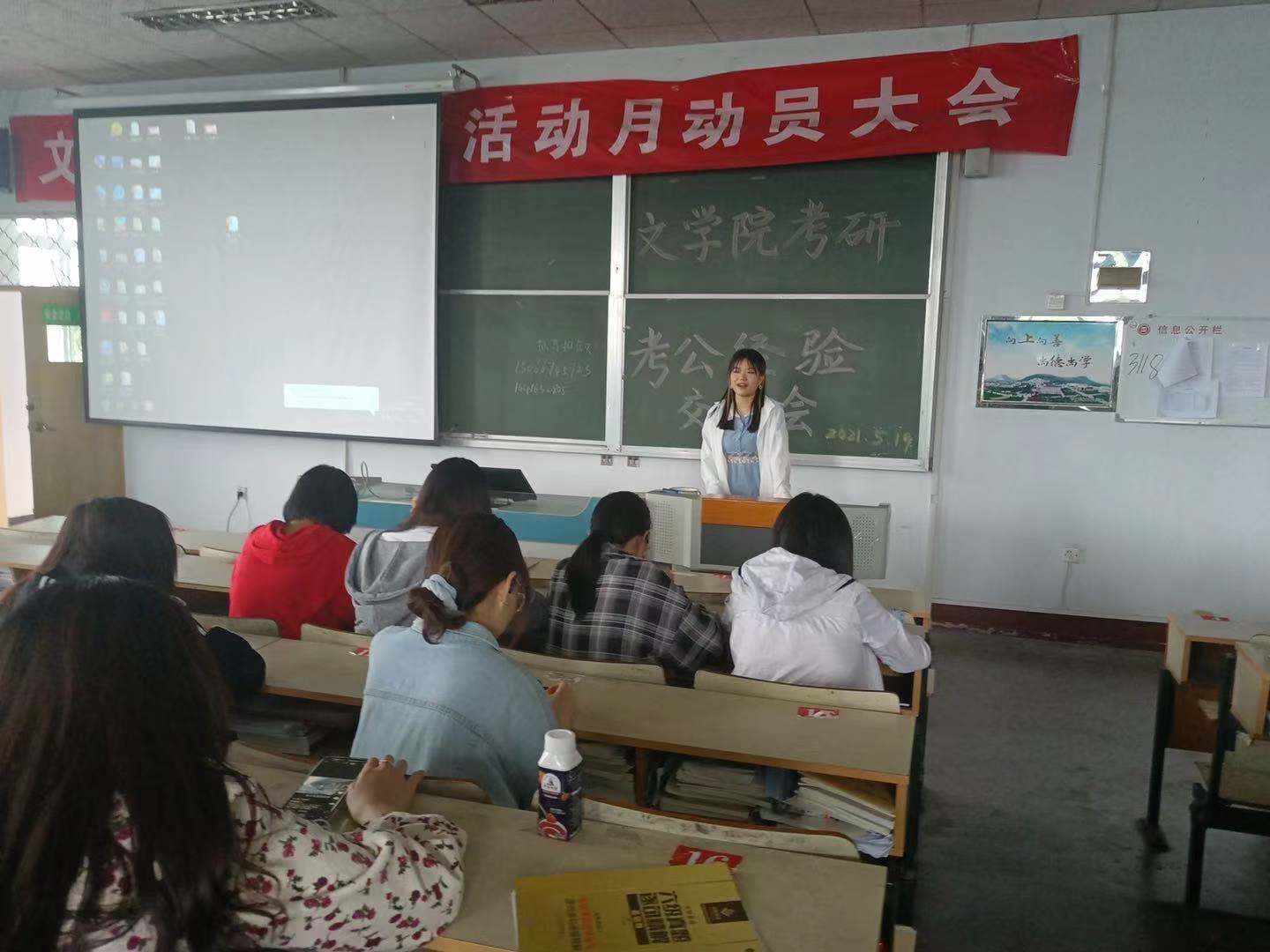 5月19日下午,6776永利集团于文科楼217教室举办考研考公经验交流会,交流会邀请了我院2021届优秀学子许文雪、李会茹、周璇、关俊喜主讲,6776永利集团200余名学生到场参加。